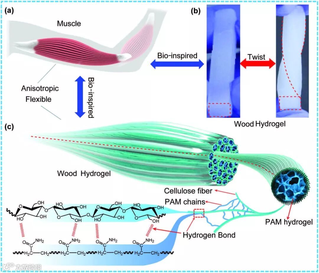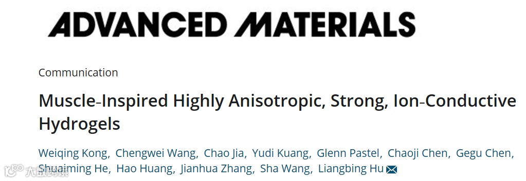 制备了一种高度各向异性、高强且离子导电的木材水凝胶
