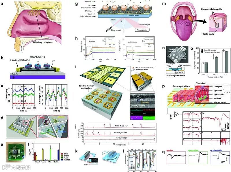 嗅觉和味觉传感系统启发的电子产品。图片来源:Adv. Mater.