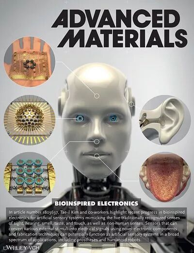 近日,韩国成均馆大学(SKKU)Tae-il Kim课题组在Advanced Materials 杂志上发表综述,作为内封面文章,回顾了人工感知系统的迅速发展,从五感的角度总结了电子传感器的现状,并展望了可穿戴或植入式电子设备、智能假肢和机器人的未来发展。
