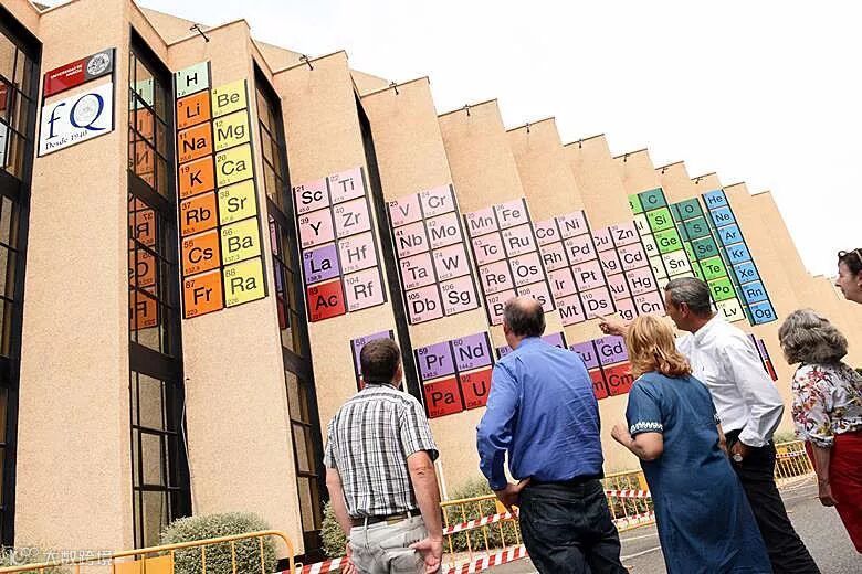 西班牙穆尔西亚大学化学楼的外墙面就是一个巨大的元素周期表。118个写有元素符号的金属正方形组成了一个150平方米大的周期表。如果你去查世界吉尼斯纪录或许能看到比这更大的元素周期表,但那些一般铺在运动场或大楼玻璃幕墙上,只是暂时性展示,而不会长期保存。穆尔西亚大学的这个元素周期表则会伴随这所百年老校的往后余生。