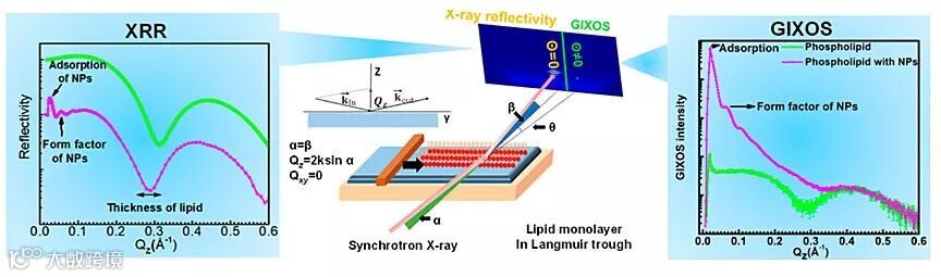 图1. X射线液体界面散射解析纳米颗粒与磷脂作用的界面结构。