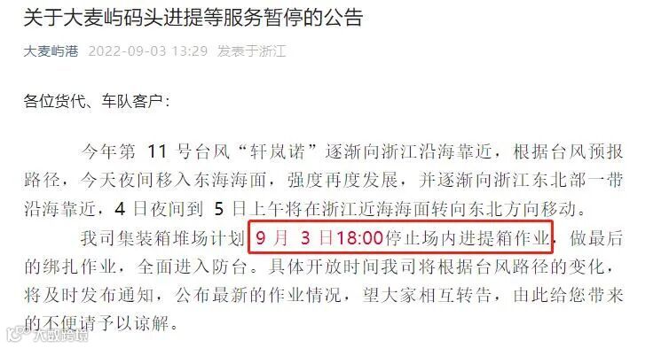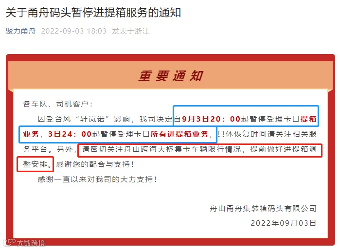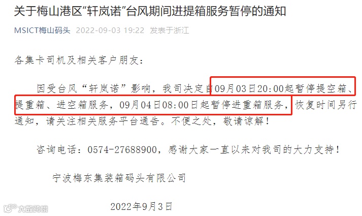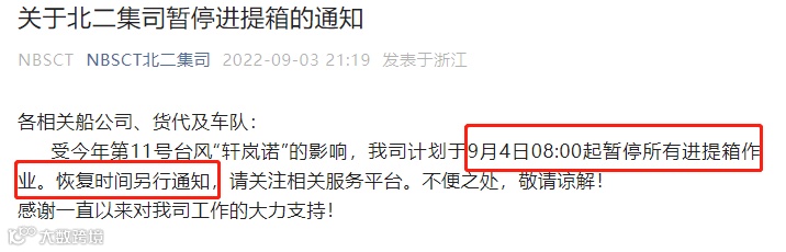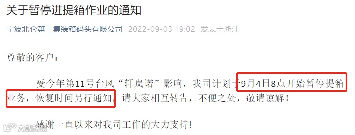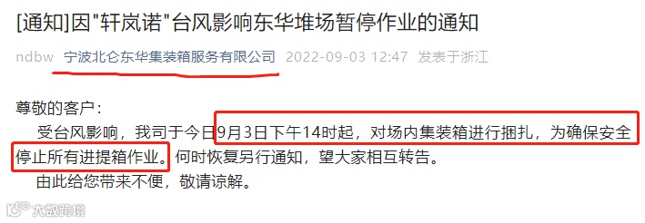 另外,宁波码头有堆场也发布停止作业通知,以下信息可供参考。