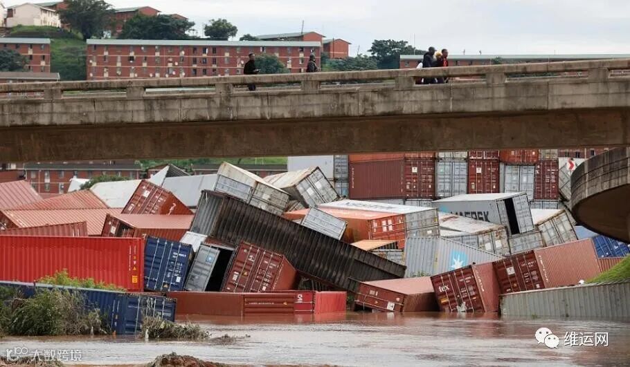 知名海滨城市德班是此次洪水受灾最为严重的地区,城市的主要道路被关闭,该市部分地区的水电供应也因此中断,数量不详的集装箱被洪水冲散落四处。