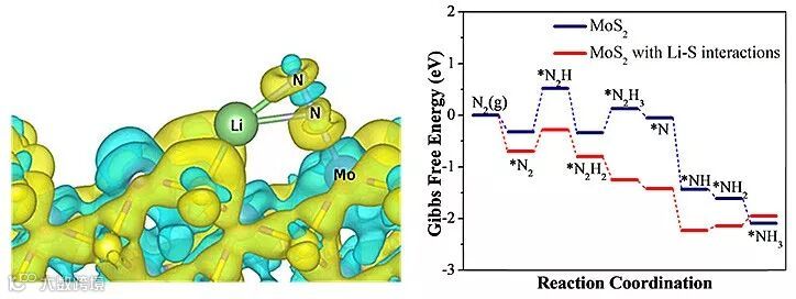 图1. “Li-S”强相互作用促进电催化合成氨反应的理论模拟计算