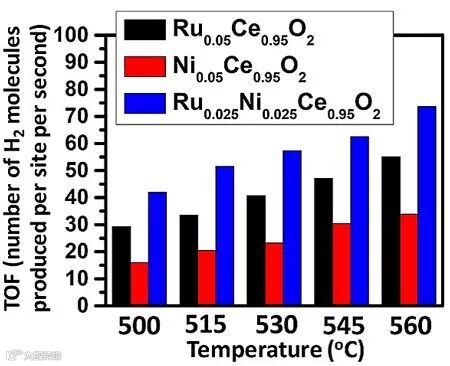 图3. 动力学控制条件下测得的金属位点催化甲烷重整的TOF