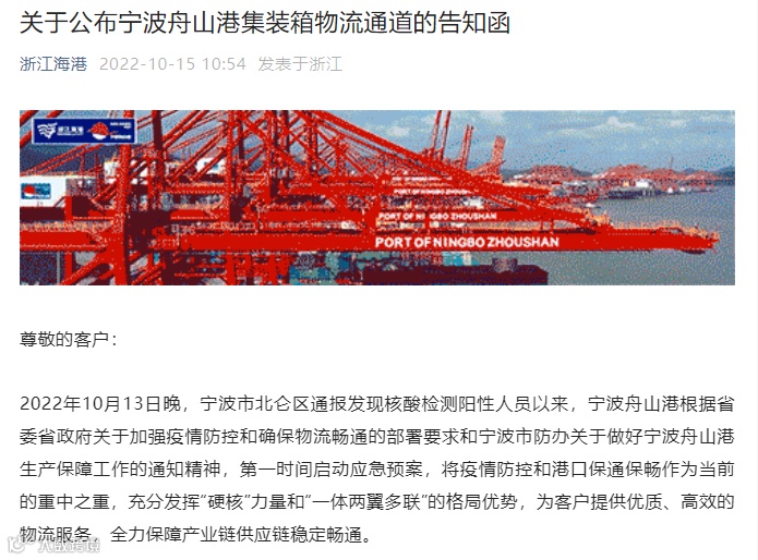 关于公布宁波舟山港集装箱物流通道的告知函