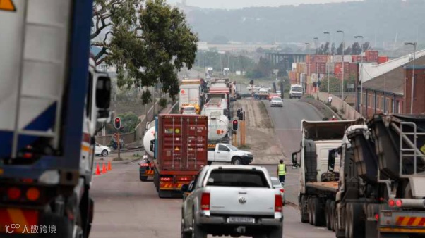 卡车在Bayhead路排队等待进入德班港,该港受罢工影响拥堵