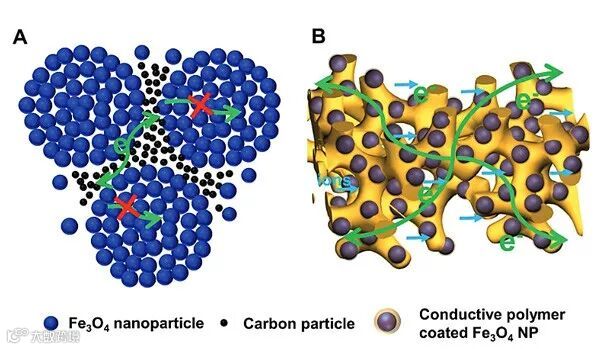 该研究首次开发了一种三维纳米结构导电凝胶框架作为锂离子电池的粘合剂和导电骨架。具有连续电子通路的三维纳米结构凝胶框架可为离子传输提供多级孔道,并在活性颗粒上形成均匀的涂层以防止聚集。此电极具有高倍率性能、高活性材料质量比和高比容量。