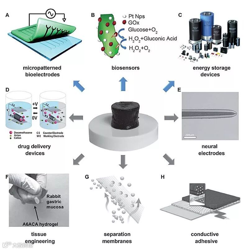 首次系统推广三维纳米结构导电聚合物水凝胶在电化学能源器件的应用。此文概述了导电聚合物水凝胶的合成方法,介绍了其在能源器件的应用,如超级电容器、锂电池、生物燃料电池等,并讨论了这类新型导电水凝胶的主要挑战和未来研究方向。