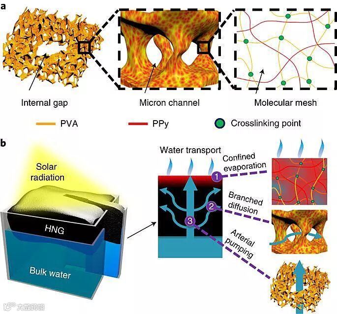 余桂华教授团队首次将水凝胶材料引入用于太阳能水纯化技术。并发现通过水凝胶对水的活化作用,实现了超高的纯化效率。