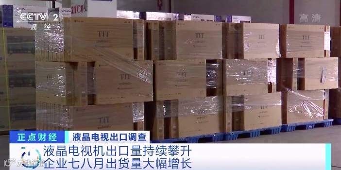 在另一家位于广东江门的电视机生产厂家,记者也同样看到一排一排的集装箱装满了电视机,正准备运往广州南沙码头。负责工厂运营的安玉江表示,进入三季度以来,电视机出口量有明显的增长,仓库发货口全部开放,并且24小时不间断发货。