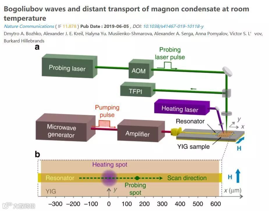 Nature Communications 发表了一篇粒子物理学相关论文,题为“室温下的Bogoliubov波和磁振子凝聚体的远距离输运”的论文,作者借用Comsol的传热模块,用于模拟实验加热装置,计算了加热后样品的温度分布。