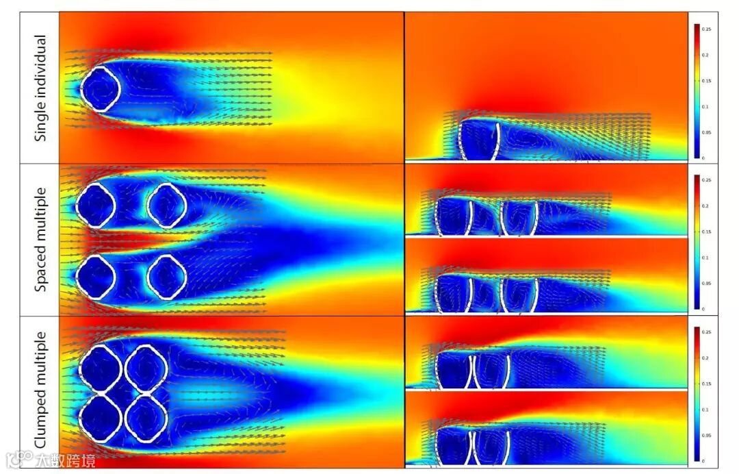 同一天,Science Advances 发表了一篇古生物学的相关论文,题为“模块化埃迪卡拉纪古生物中的群居悬浮觅食”。论文中,作者借用了利用COMSOL多物理模型进行了CFD模拟,并与来自纳米比亚南部的新化石数据相结合,来测试埃迪卡拉纪植物的竞争取食模式,来分析生物群体的流体动力学。