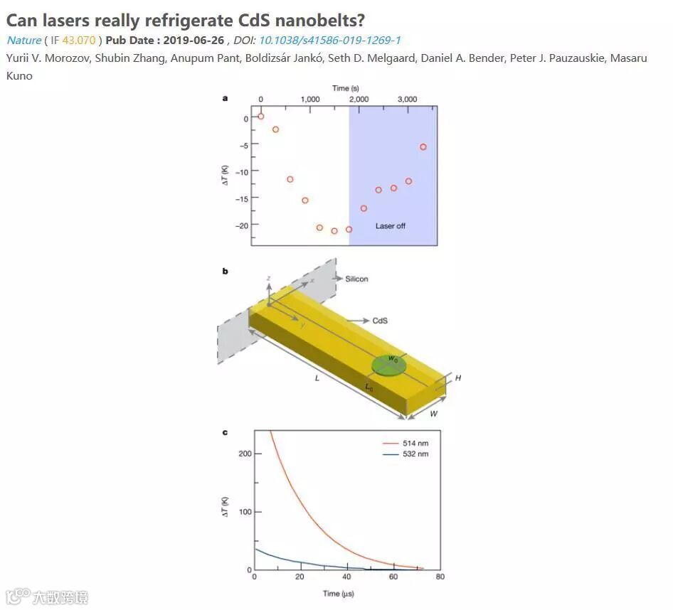 Nature 正刊上发表了一篇学术争议相关问题。作者提出了“激光真的能冷冻硫化镉纳米带吗?”的质疑。论点是,借助Comsol的传热模块模拟,指出了文章中的实验观察和Comsol模拟存在很大的差异。