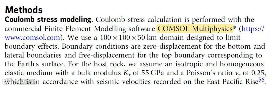 Nature Communications发表了一篇地质学领域论文,题为:” 中海脊地震的潮汐触发机制” 文章中,作者借用Comsol中固体力学模块建立模型,来模拟由于海洋低潮引起的岩石应力变化。