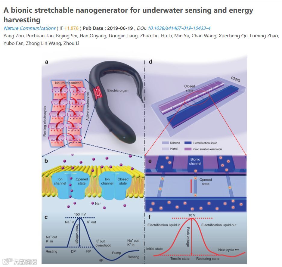 Nature Communications 发表了一篇大牛王中林的纳米发电的论文,题为“一种用于水下传感和能量采集的仿生可伸缩纳米发电机”。论文中,作者借用固体力学模块和电学模块,模拟了所制备的方式纳米发电机在拉伸50%下的电位分布和电位变化。
