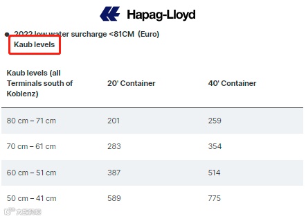 Kaub附近河段为莱茵河中段。当测量水位降至40厘米或以下时,由于吃水限制,驳船的运力仅为25%左右,正常情况下船只需要大约1.5米的水位才能满载航行,由于船只可载货量大幅下降,载有商品的船舶驶过莱茵河的经济成本将被急剧推高,部分大型船只或将直接断航。