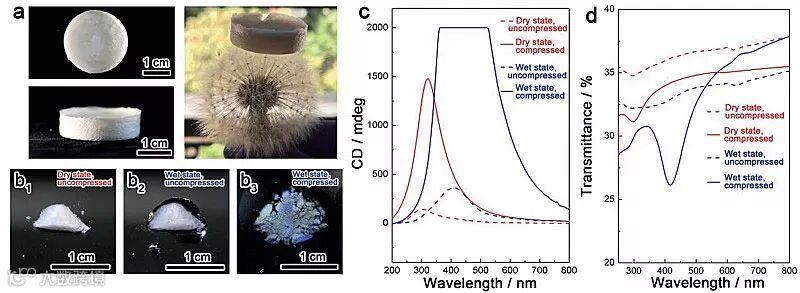 气凝胶不同状态下光学性质表征。图片来源:Adv. Mater.