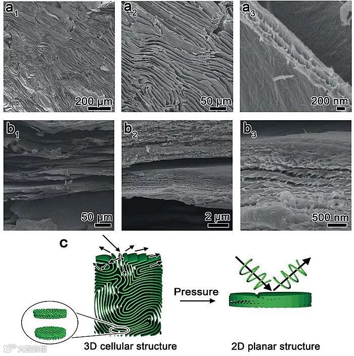 气凝胶压力作用下材料结构变化表征。图片来源:Adv. Mater.