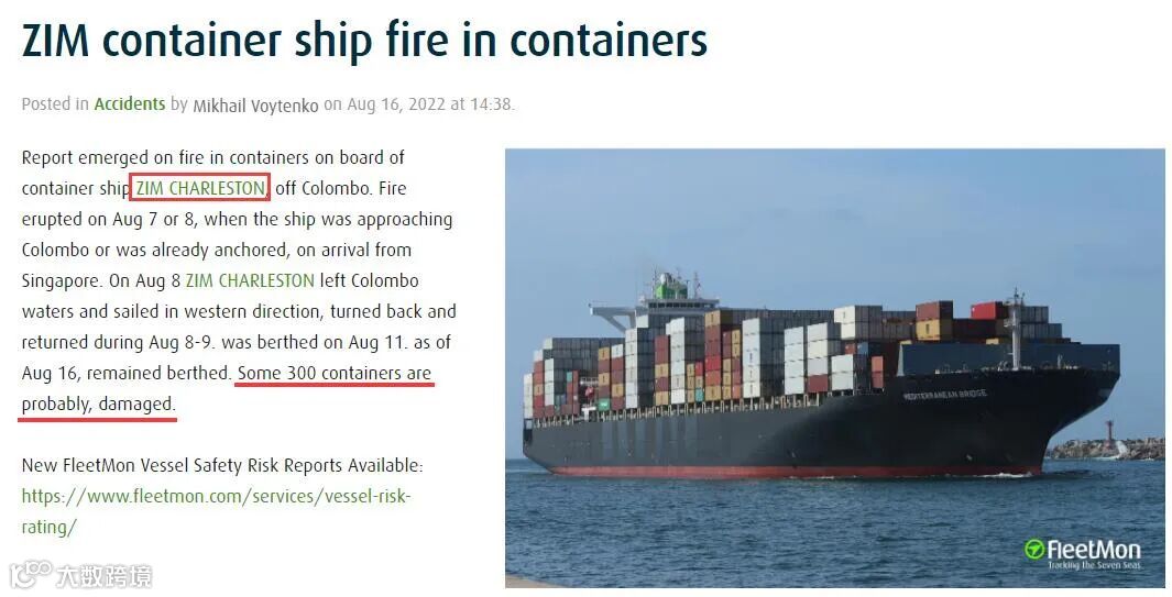 导读:点击蓝字,关注我们据外媒报道,在科伦坡附近的一艘集装箱船“ZIM CHARLESTON”船上的货舱集装箱着火