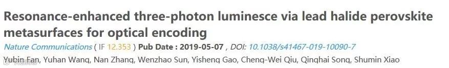 Nature Communications 上又发表了一篇有关钙钛矿光学性质的论文,题为“卤化铅-钙钛矿超表面的共振增强三光子发光用于光学编码”。论文中,作者使用Comsol的光学模块和电磁模块模拟计算了近红外和可见光谱下,钙钛矿超表面的投射光谱,及其共振模的电磁场分布。