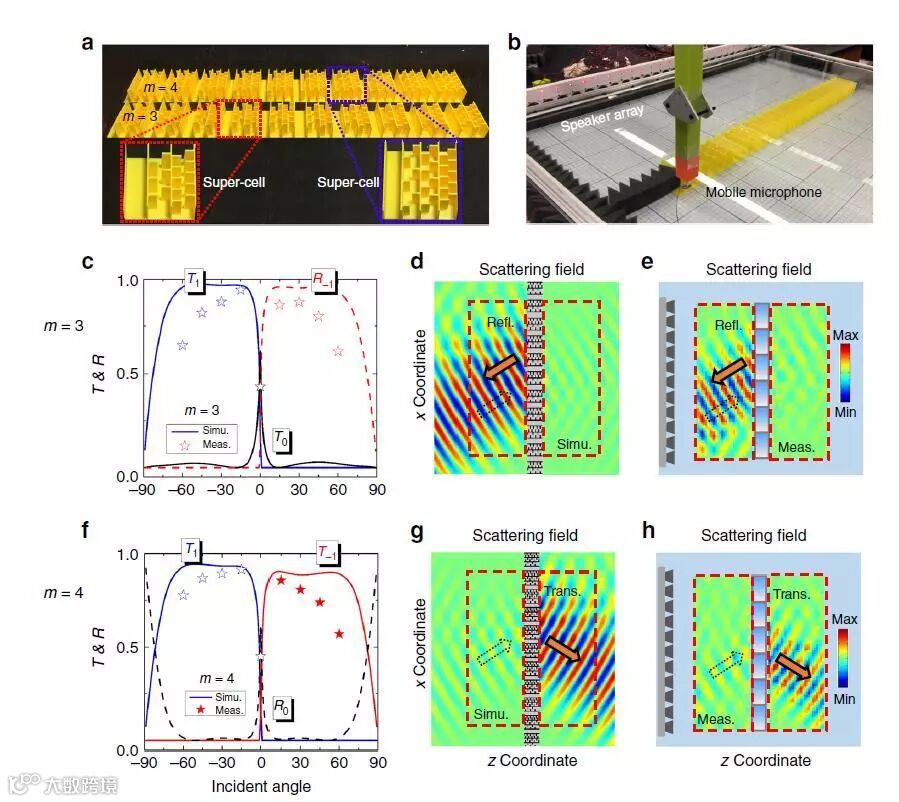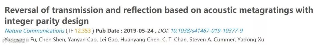 Nature Communications 上又发表了一篇声学相关论文。题为“基于整数倍设计声学超光栅的透射与反射反转”。论文里,作者利用Comsol软件的压力声学模块进行了声学的全波模拟。通过对COMSOL射频模块的端口分析,数值计算了衍射级的归一化传输效率和反射效率,并用光学相似物代替了声廓线。
