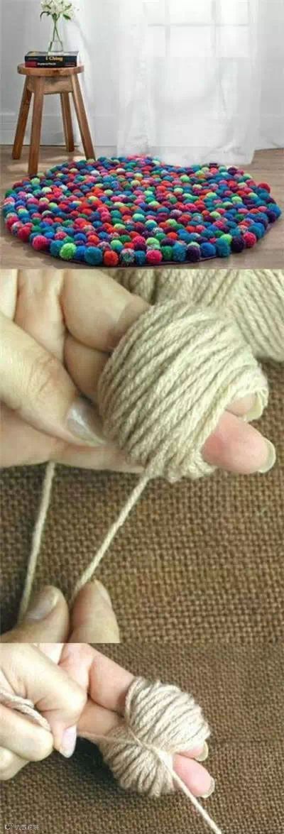 5、毛线球球也很简单,搭配自己喜欢的色彩吧!