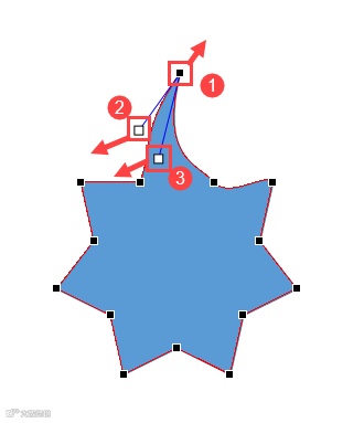 6. 单击凸出的点并向图形外拖动,拖动该顶点上的两个手柄,拉的越长对附近的线条影响越大,制作出弯曲的触手的感觉;