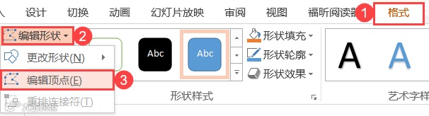 3. 在选中此“七角星”图形的情况下,单击菜单栏“格式”,单击“编辑形状”,单击“编辑顶点”图案;