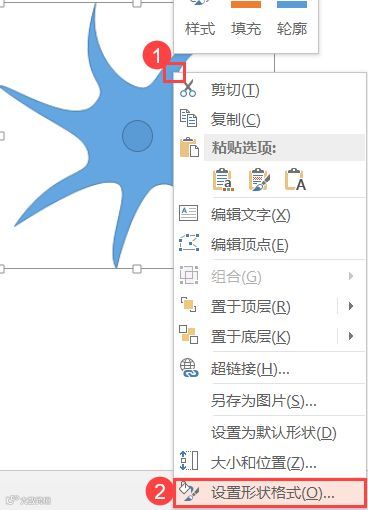 3. 选中圆形细胞核,单击鼠标右键,单击“设置形状格式”