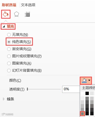 4.会弹出关于设置形状格式的窗口,在“填充线条”下的“填充”中点选“纯色填充”,将“颜色”换成“白色,背景1,深色50%”