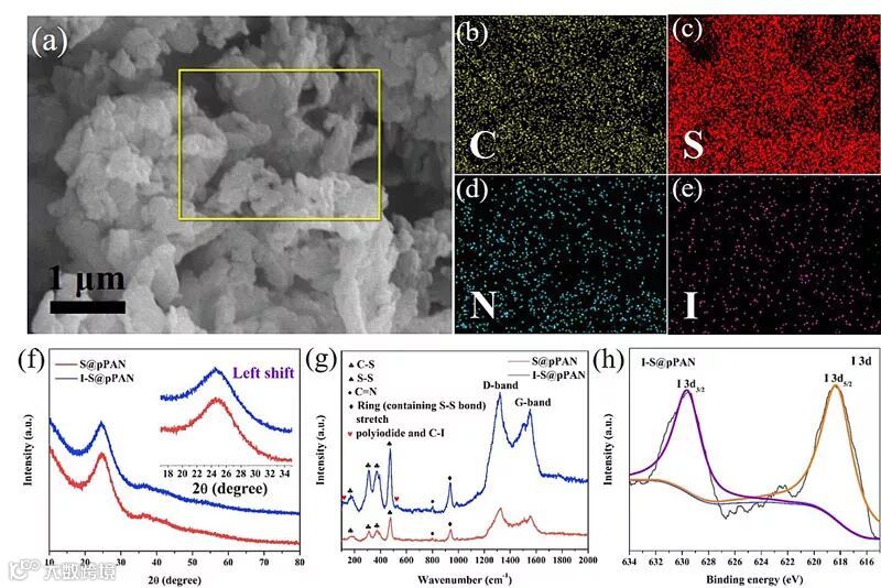 哈尔滨工业大学团队采用高温固相合成法,一步制备了碘掺杂硫化聚丙烯腈(I-S@pPAN)复合材料,并在室温Na-S、K-S电池研究中获得了优异的电化学性能。该材料适用于酯类电解液体系,能有效抑制多硫分子溶解导致的“穿梭效应”;材料经过碘掺杂后其电子和离子电导率明显提升,加快了反应动力学,使材料表现出优异的比容量、倍率性能和长循环稳定性。在基于酯类电解液的室温Na-S和K-S电池中,材料0.1C下放电容量分别为1787 mAh/g 和1448 mAh/g,100次充放电循环后,容量仍可达850 mAh/g和722 mAh/g。2C倍率下,室温Na-S体系中材料比容量为788 mAh/g,500次循环后容量保持率为85.5%。