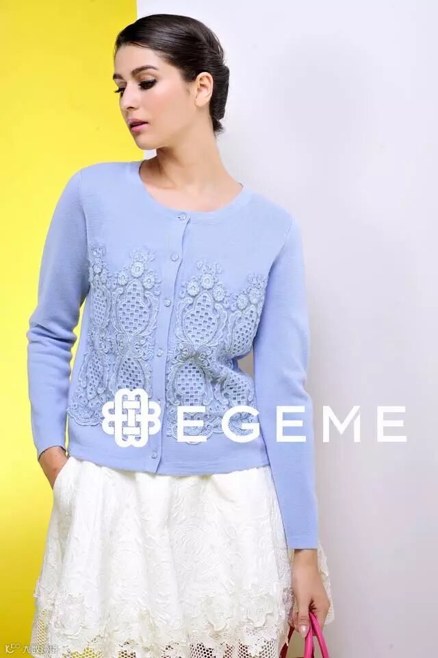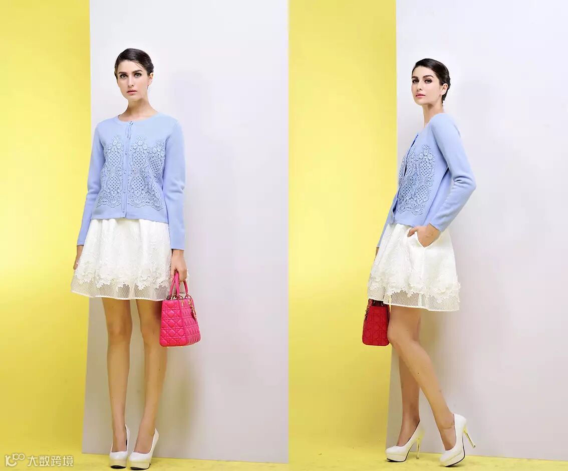 蓝色针织开衫,清新的颜色上面花朵点缀,凸显了层次感,避免单调,搭配白色蕾丝裙,可爱俏皮,时尚减龄!