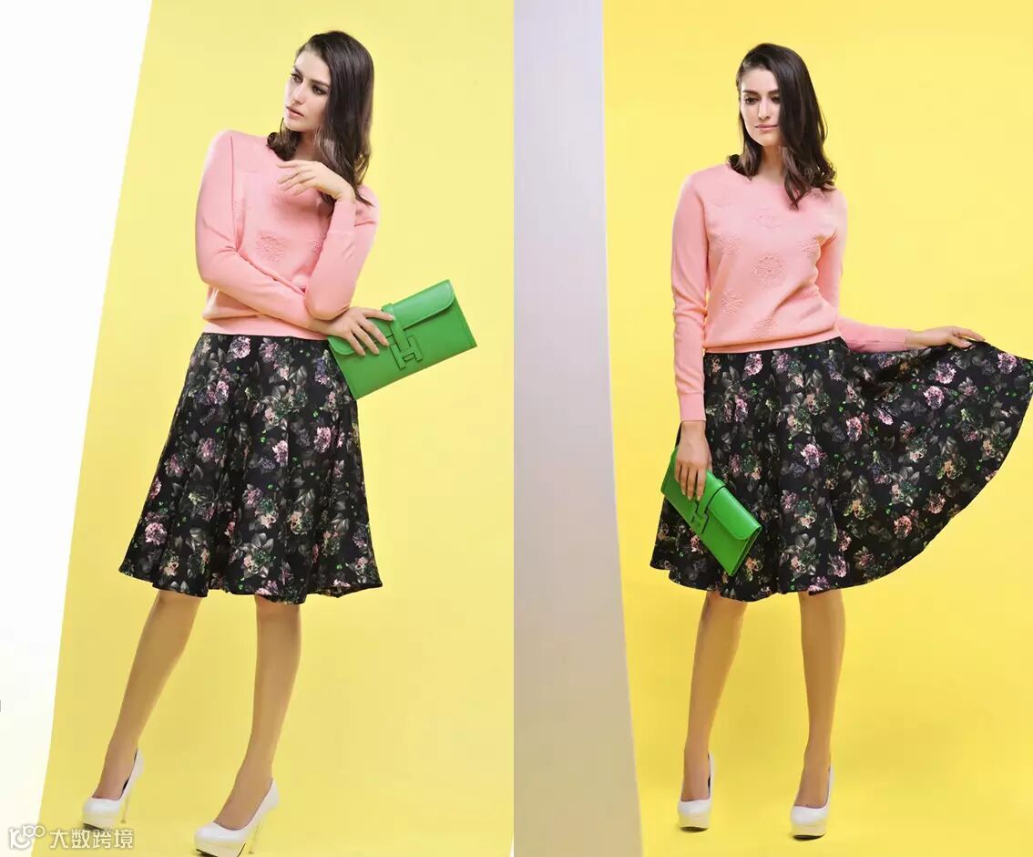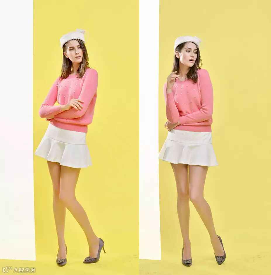 蓬松舒适的软糖粉红色套头衫,手工钉珠增加时尚感!搭配白色伞裙,粉嫩的视觉带给人们幸福与梦幻的体验。