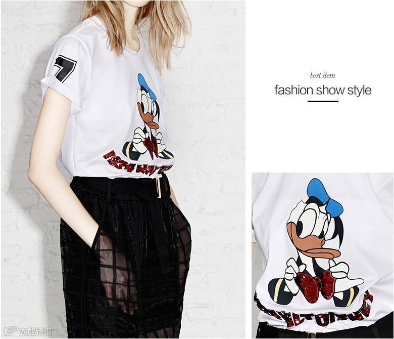 孩童时代熟悉的卡通人物在我们长大后依然可以穿在身上,Donald Duck唐老鸭在T恤等基本单品上出现,卡通形象的魅力实在不能忽视,让着装更具off-duty的亲和力,活力诠释都市趣味的年轻版本。