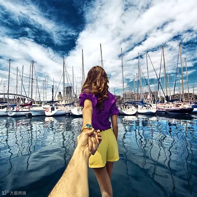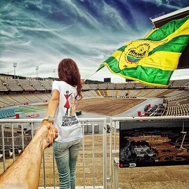 这组《Follow me》系列的第一张照片拍摄于2011年,男主Murad Osmann与女友Nataly Zakharova到巴塞罗那度假,因为职业习惯,他几乎无时无刻都在拍照,这引来女友的不满,她拉着他的手向前走,希望对方能够与她一起享受这次旅程。