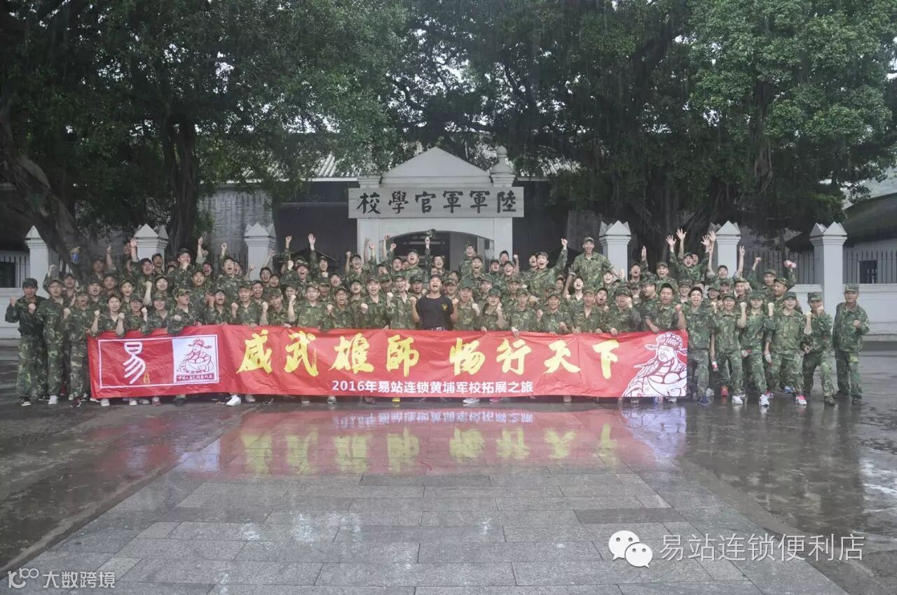 为更好的贯彻企业的核心文化,激发易站人的潜能,提高团队的纪律性和凝聚力,打造一支独具一格、无所不能、战无不胜的易站团队,2016年5月18日,易站连锁全体员工在易站创始人兼董事长洪庞青亲自带领下,继2011年、2014年后第三次来到近代中国最著名的军事学校黄埔军校参加以“威武雄师、畅行天下”为主题的为期4天4夜的军训拓展训练。通过此次的军训拓展,让全体易站人深刻意识到:一支优秀的团队想要坚不可摧站在巅峰,必须经过无数次的锤炼与磨砺!
