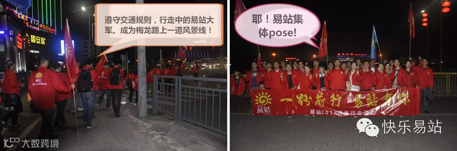 2015年12月31日晚19:00 时整,“一路前行,易站有你” ,易站徒步行走11.11公里活动在一片欢呼声中精彩开启。