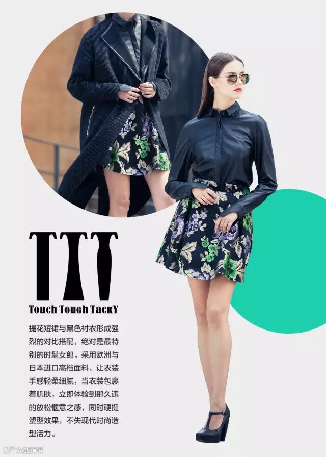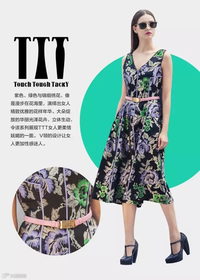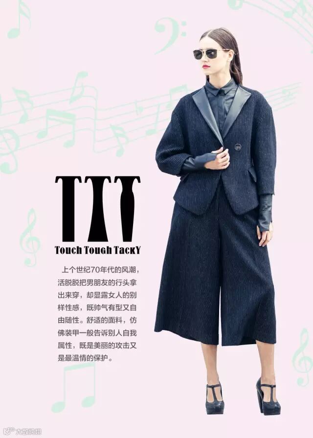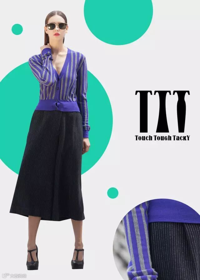由意大利独立设计师创立的服装品牌TTT:Touch-感性,Tough-强悍,Tacky-繁艳。一句话——发现你的时尚傲骨。 突出对面料二次开发,在不同的面料与风格元素进行碰撞。做自己的时尚品味。