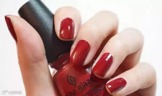 STEP 2:待护甲油干透后,涂上鲜艳的红色。