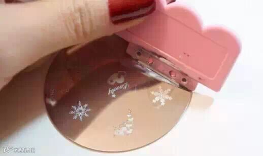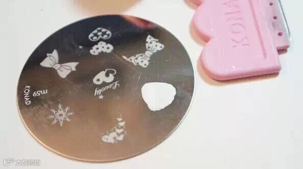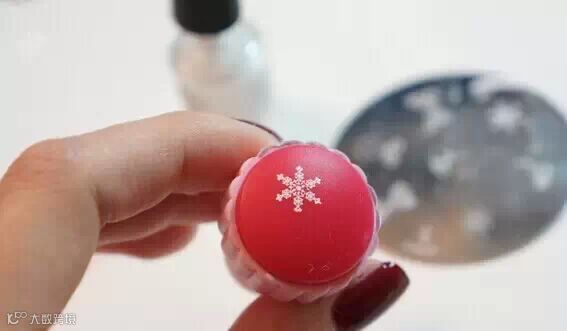 STEP 3:在模板上,选择雪花部分,涂上白色甲油。