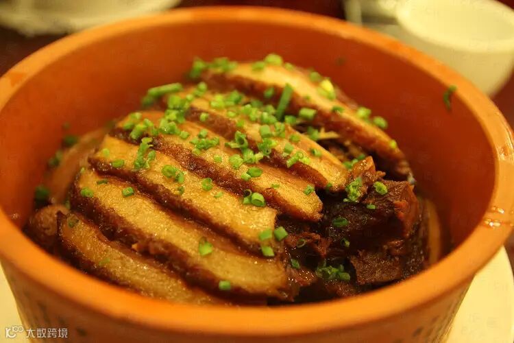 佰依集团文创项目:挖掘昆山蓬朗本地传统特色菜,百年祖传精湛手艺,老土灶五小时细火熳炖,皮起皱纹,色泽红润,酥烂鲜香,酥而不腻,入口即化。