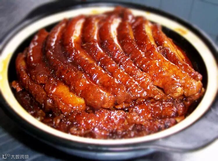上好的五花肉经过高温油炸,表皮结起漂亮的皱纹,肥瘦相间的完美层次,入口即化,烂而不腻,是每次饭桌上最抢手的主菜。