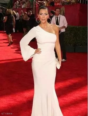 我们看一下著名的胖子名媛金卡戴珊,她出席活动什么的除了大V领和大圆领的衣服,最常穿的就是大斜肩的。斜肩设计再搭上她的小脸,让人几乎忘记她是个丰乳肥臀的妞。