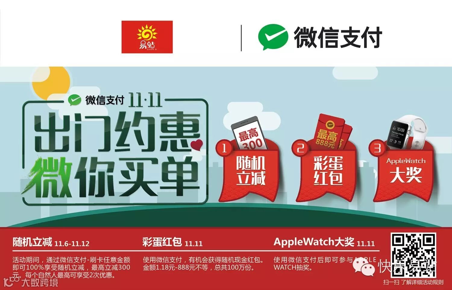 双十一不剁手,微信支付日|随机立减+彩蛋红包+iwatch大奖,易站等着你!