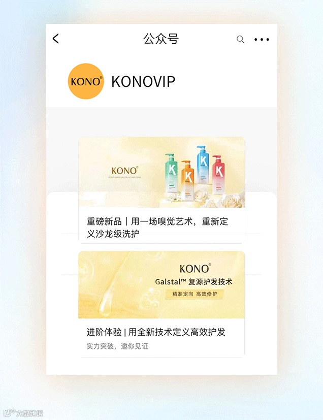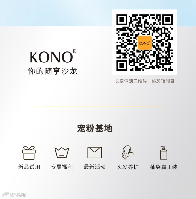 KONO是一个专业护发品牌。始终坚持以满足用户对护发的极致追求为导向,从全球引进原料及先进技术,用专业护发沙龙的标准进行产品研发,精研功效护发产品,让每个人随时都能享受沙龙级的护发体验。