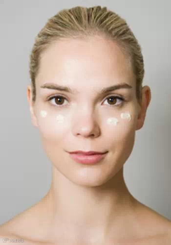 美国偏好高的颧骨,因此会在颧骨底下涂阴影,让颧骨显得突出,由此可见东西方的审美差异。另外,还会把铜色涂在下巴外廓、太阳穴,加深明暗对比。腮红则会从中间一直往后,涂抹到耳朵跟前。