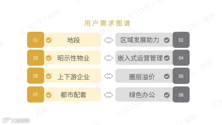 源于对运营类资产品牌的长期实践和研究,结合未来区域经济的集群式发展洞察,2019年底颂扬商业成立产办团队,专项负责产业研究、产业类和办公类项目品牌及全营销策划。团队结合多年城市及项目考察研究,以及丰富的操盘经验,针对产业类产品的生态化运营、资源触发式升维的特点凝练出「用户需求图谱」、「产办品牌定位模型」、「办公及产城运营服务体系」、「多场景产办品牌营销」等一系列专业模型与实践方法。