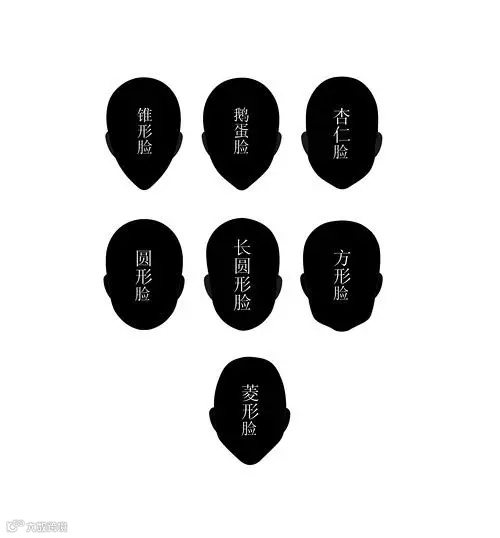 脸型大概分成:锥形,鹅蛋形,杏仁形,圆形,长圆形,方形,菱形七种。