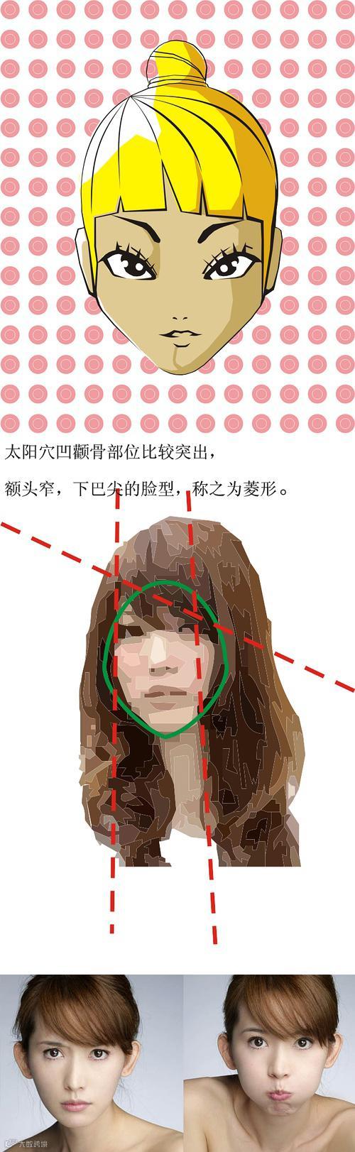 ↑↑↑菱形脸,菱形脸顾名思义,就是菱形。额头狭窄,颧骨突出,下巴和下颌骨处又比较窄的脸型。